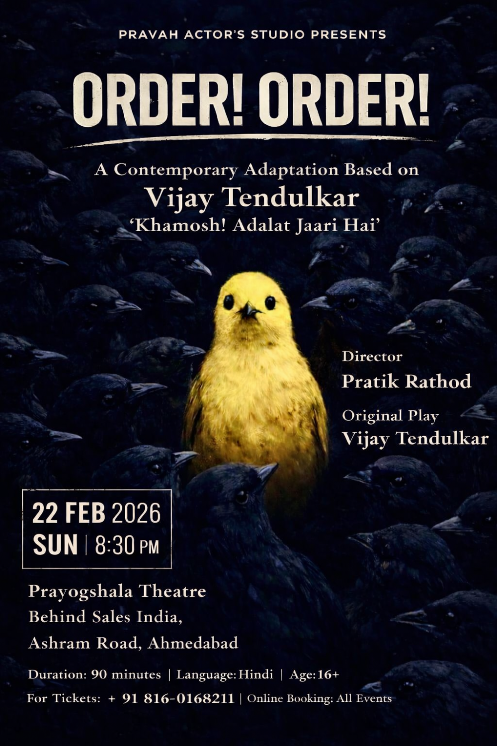 A Contemporary Adaptation of Vijay Tendulkar’s - Khamosh! Adalat Jaari Hai, performed by Pravah Actors Studio.