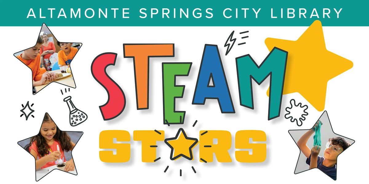 - **Event Description**: Looking to engage your child in science, technology, engineering, art and math? Help them soar with STEAM Stars.About this EventLooking to engage your child in science, technology, engineering, art and math? Help them soar with STEAM Stars, a monthly program for ages 5 to 12, sponsored by the Altamonte Springs Science Incubator (AS2I). Join us as we create fun STEAM activities using everyday household items. All materials are provided. Note: A signed City waiver is required to participate. For minors, a parent or guardian must complete and submit the waiver at the event. Waivers are available at the Library or online at Altamonte.org/Library. Once submitted, the waiver remains on file and does not need to be resubmitted.