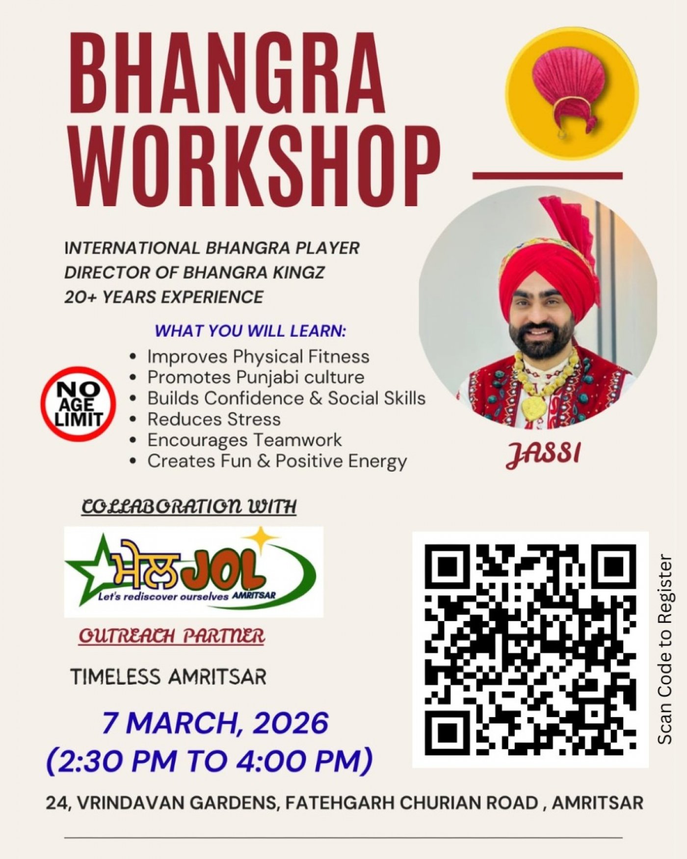 Before 8th March arrives, let’s raise the energy with a dhamakedaar Bhangra Workshop at Meljol Amritsar — where women AND men come together to dance, celebrate, and vibe as equals!