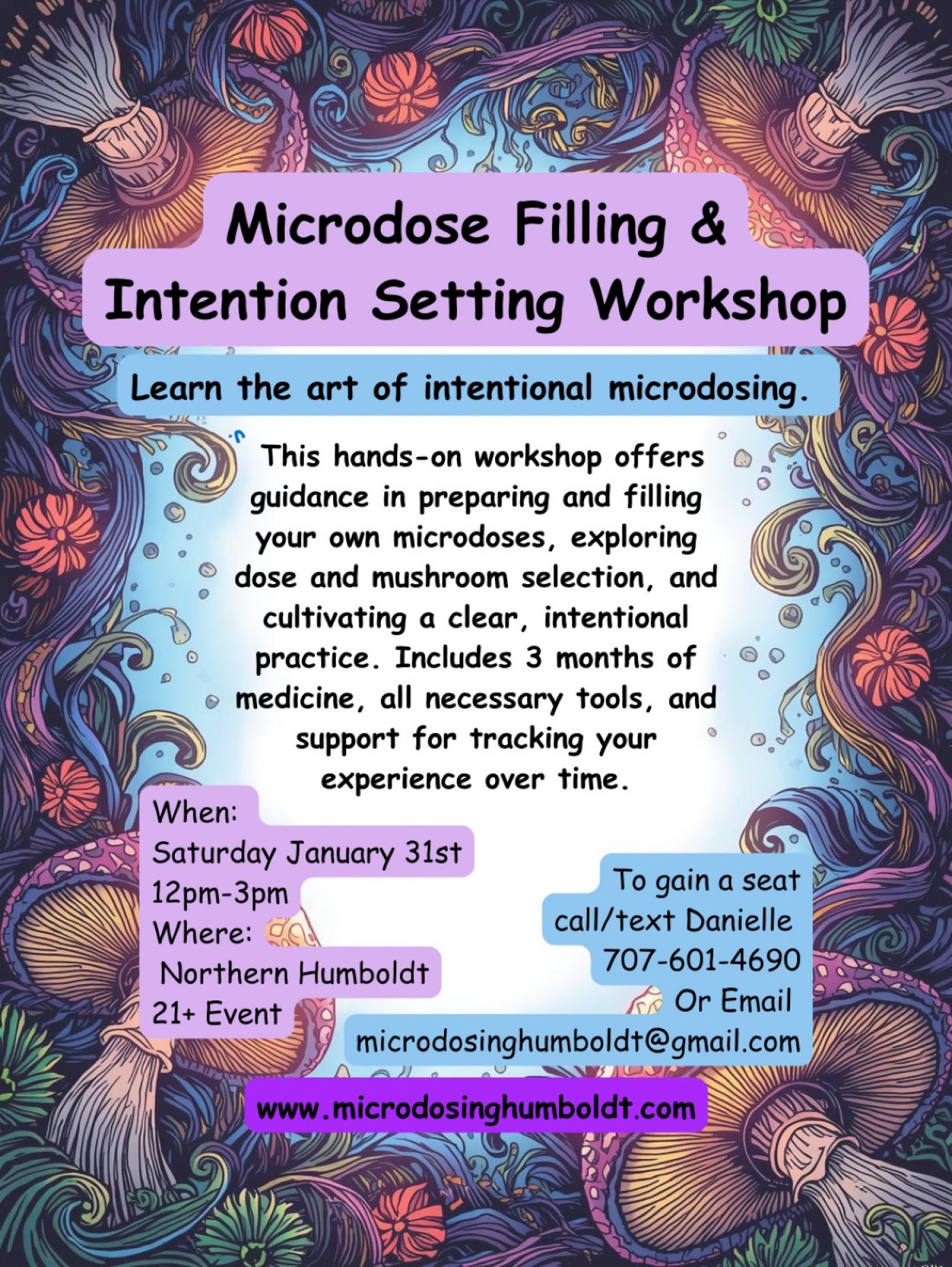 Limited to 10 participants. More info at microdosinghumboldt.com To ask questions or gain your seat off this platform please email bWljcm9kb3NpbmdodW1ib2xkdCB8IGdtYWlsICEgY29t or text 707-601-4690