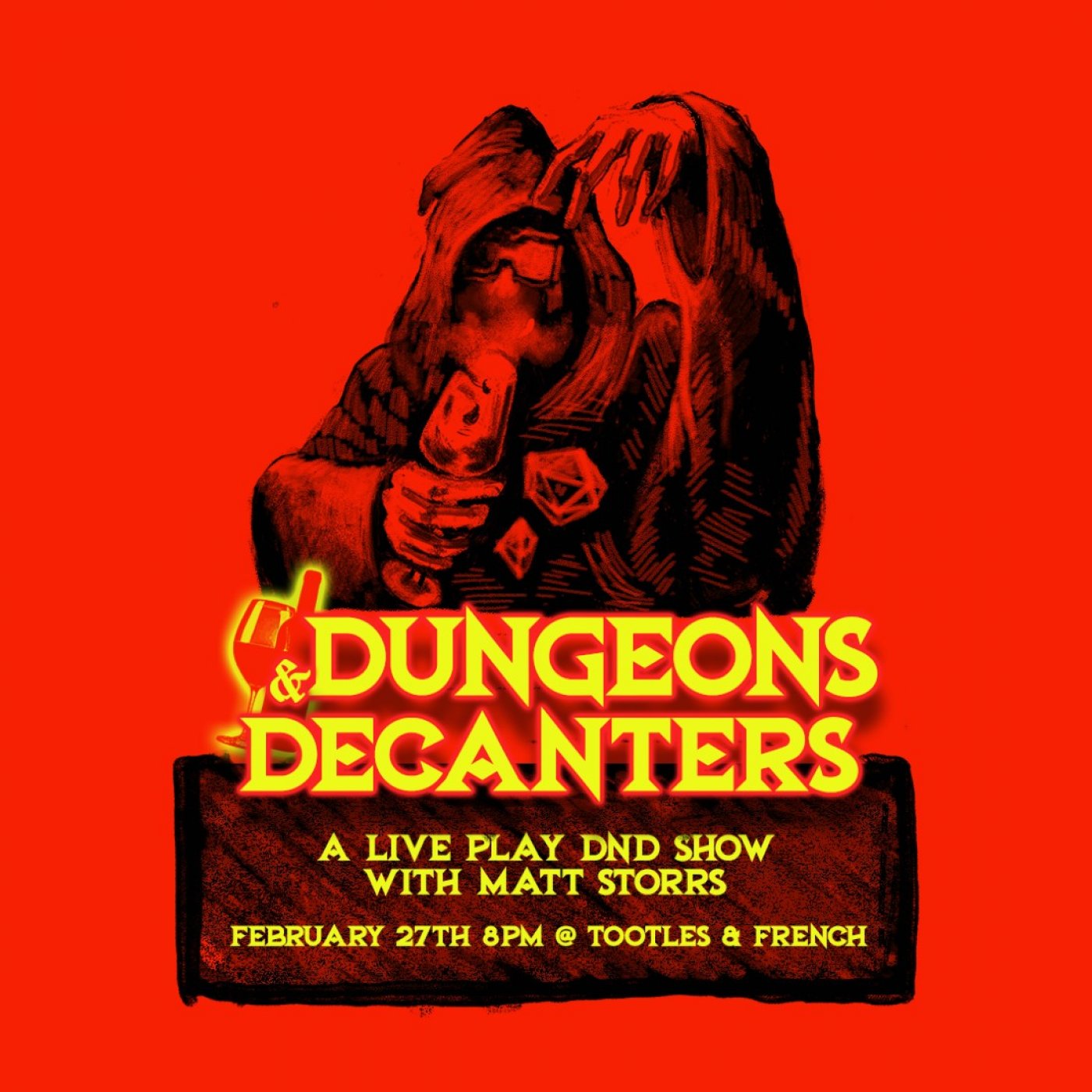 Dungeons & Decanters is a live, interactive adventure blending Dungeons & Dragons gameplay, comedy, and immersive storytelling. Whether you’re a seasoned adventurer or completely new to the game, this is a night designed for laughs, surprises, and shared chaos.