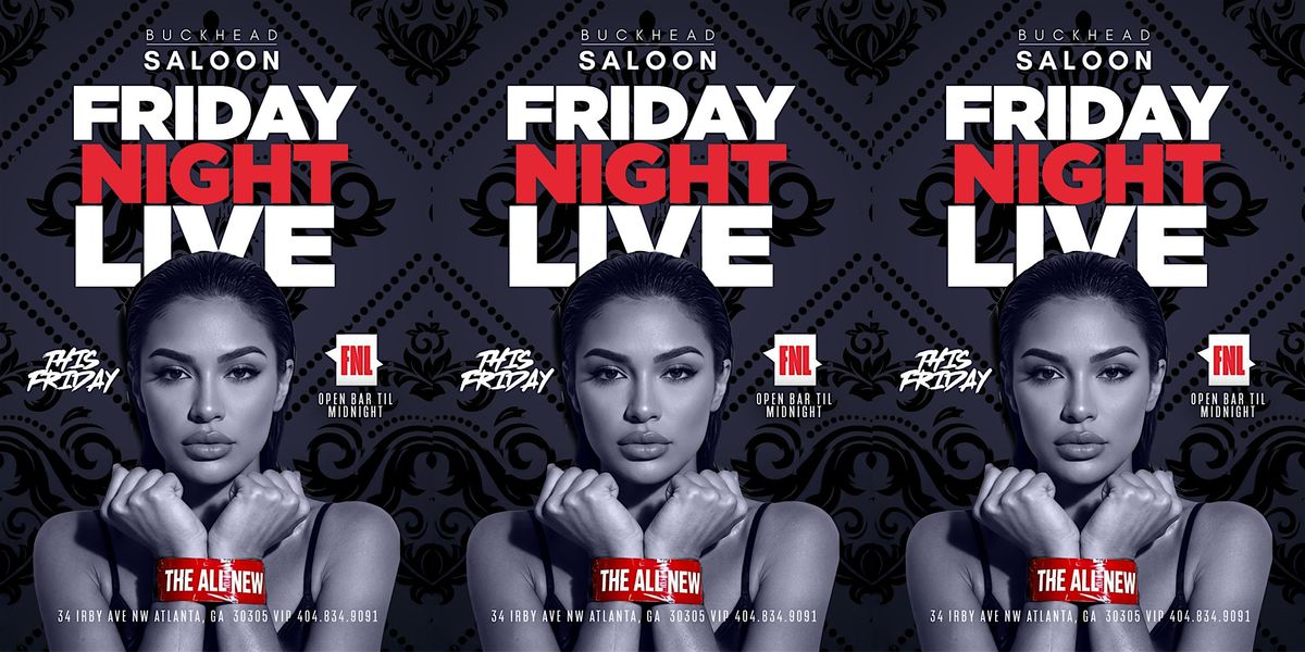 - **Event Description**: Atlanta, pull up — Fridays at Buckhead Saloon are going up again. We’re mixing the city’s favorite turn-up with the infamous Napkin WarzAbout this EventAtlanta, pull up — Fridays at Buckhead Saloon are going up again. We’re mixing the city’s favorite turn-up with the infamous Napkin Warz… and yes, it gets wild.Start your night with open bar ‘til midnight, throw down in the napkin battle, and then slide right into the all-new Friday Night Live energy — vibes, lights, confetti, sold-out sections… the whole Buckhead movie.If you’ve been waiting for a Friday that actually feels like Atlanta again? Yeah, this is it.Pro – $800• 2 Bottles• 10 Bands• Don Julio Reposado includedAll-Star – $1,200• 3 Bottles• 15 Bands• Don Julio Reposado includedHall of Fame – $1,400• 4 Bottles• 20 Bands• Don Julio Reposado includedDeposit required for all sections. Goes toward total balance. Tax &amp; gratuity included.  https://cdn-az.allevents.in/events9/banners/ecc7a2e0-e423-11f0-b1e5-fb8d04c0193d-rimg-w622-h740-dcf4f4f4-gmir.jpg
