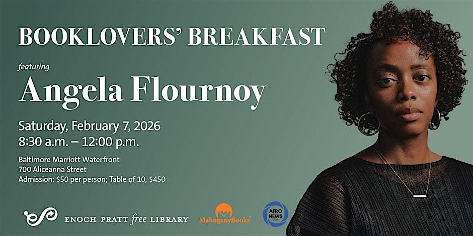 - **Event Description**: Join us for our annual Booklovers' Breakfast with award-winning novelist Angela Flournoy.About this EventWe’re honored to welcome award-winning novelist Angela Flournoy as the speaker for this year’s Booklovers' Breakfast on Saturday, February 7, 2026, 8:30am - noon, at the Baltimore Marriott Waterfront (700 Aliceanna Street).Angela Flournoy is the author of the critically acclaimed novel The Turner House, winner of the VCU Cabell First Novel Prize and a finalist for the National Book Award, an NAACP Image Award and the PEN/Robert W. Bingham Prize for Debut Fiction. A National Book Foundation “5 under 35” Honoree, Flournoy skillfully illuminates universal themes of home, family and friendship through unforgettable characters, finely-wrought prose and subtle humor.Her forthcoming novel The Wilderness (Mariner Books, September 16, 2025) explores the lives of five Black women over the course of a twenty-year friendship—from the late 2000s to into the late 2020s—as they navigate careers, marriage, and motherhood amid the tumult of modern American life. A sweeping yet intimate story, The Wilderness examines how chosen families form and fracture, and what it means to grow alongside the people we love.A graduate of the Iowa Writers’ Workshop Flournoy has held fellowships from the NEA, the Cullman Center, and the American Academy in Berlin. Her essays and criticism have appeared in The New York Times, The Los Angeles Times, The Paris Review, and elsewhere. She lives in Los Angeles.DATE/TIME : Saturday, February 7, 2026 (8:30 a.m. – noon)LOCATION: Baltimore Marriott Waterfront (700 Aliceanna Street)Advanced registration required:Admission: $50 per person; $450 for a Table of 10All seats are reserved in order of receipt of registration and payment.All sales are final. No refunds will be given.For more information, call 443-768-0762Books sold by MahoganyBooksDeadline for registration: Monday, January 26 at noon