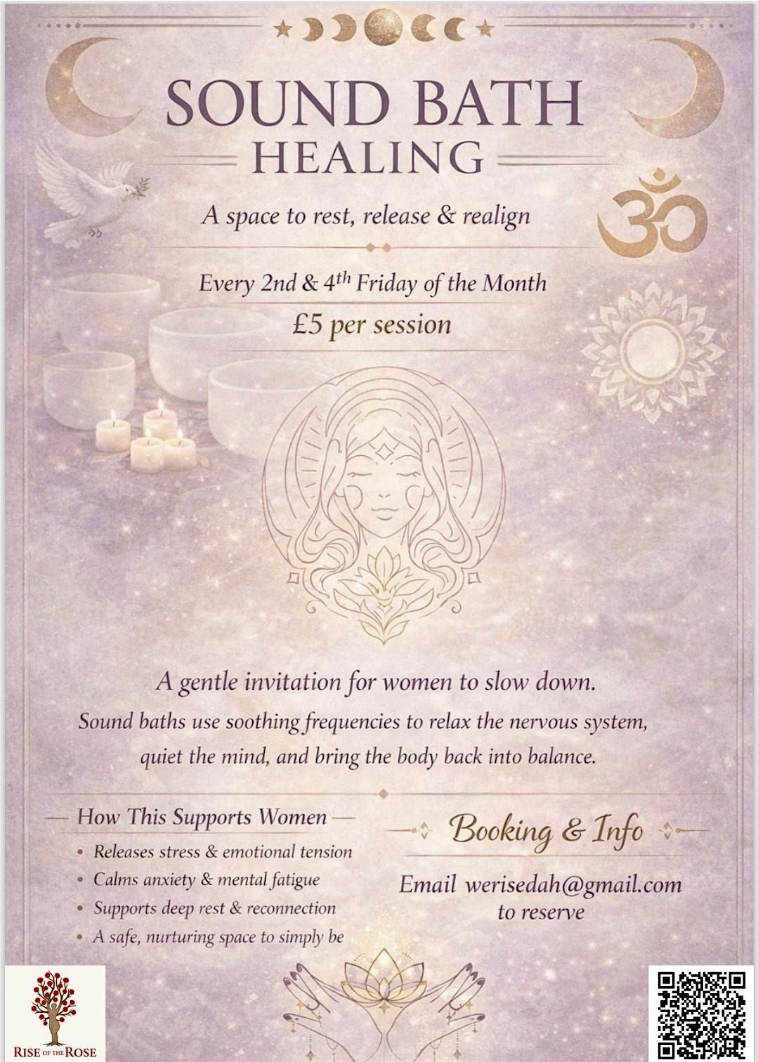 - **Event Description**: A sacred sound bath creating space for rest, release, and gentle realignment through soothing vibration.About this EventA space to rest, release &amp; realign