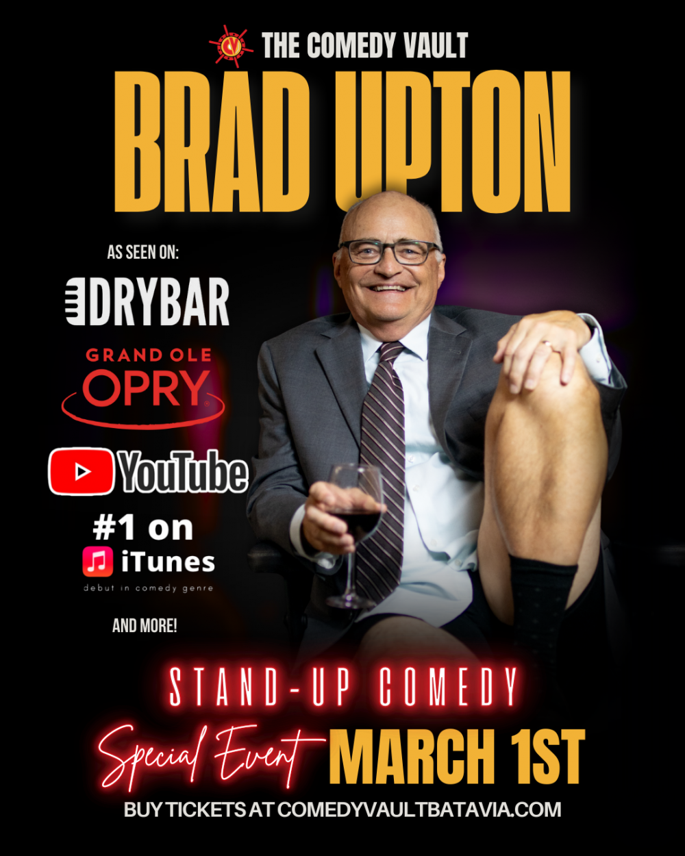 See Brad Upton LIVE @ The Comedy Vault Batavia on Sunday, March 1, 2026!