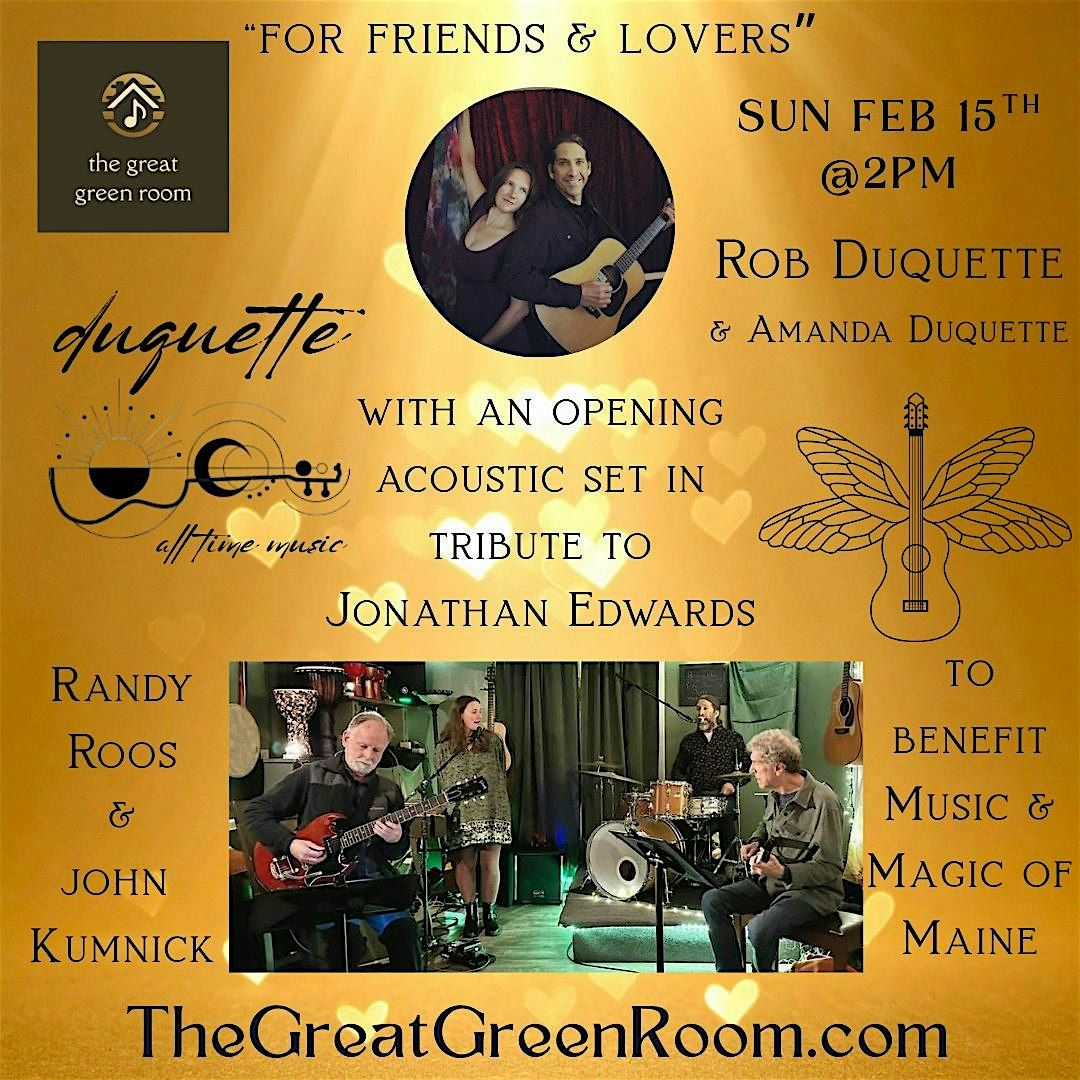 - **A:** &quot;For Friends &amp; Lovers&quot; an afternoon of music with &quot;duquette&quot; is organized by Music and Magic of Maine.