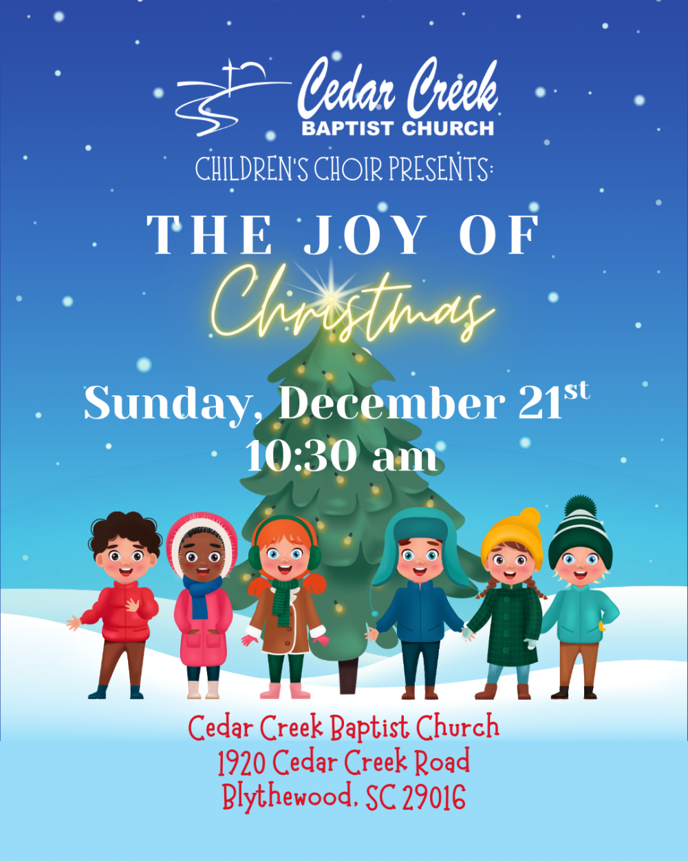 You’re Invited! Join us during our worship service on Sunday December 21st at 10:30 AM as our Children’s Choir presents “The Joy of Christmas” — a joyful celebration of the season!