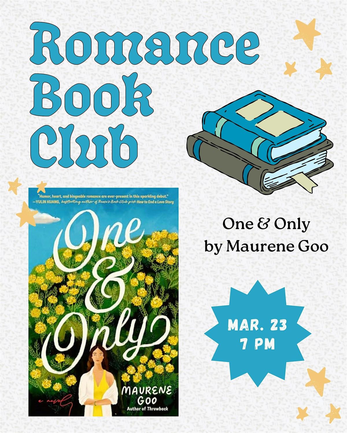 Tickets for March Romance Book Club: One & Only can be booked here.