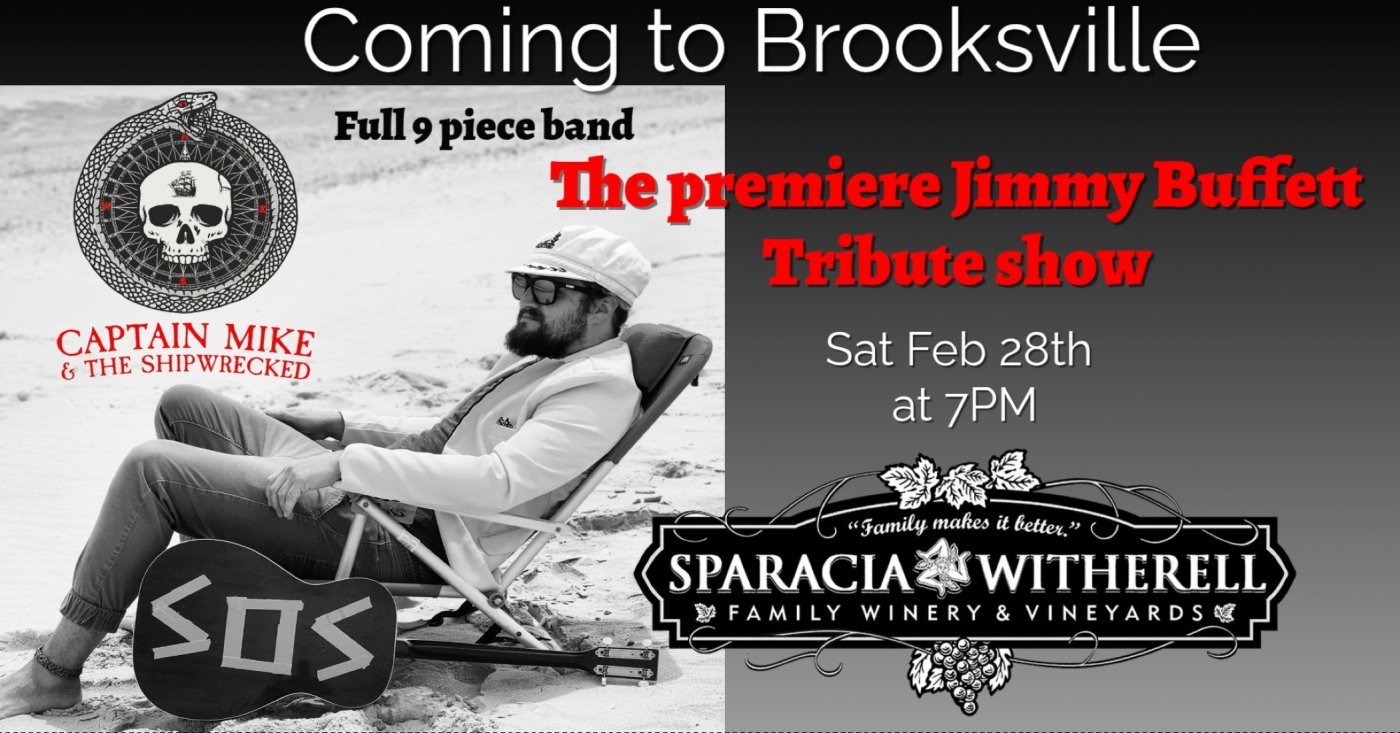 Coming to Brooksville a special tribute show to remember: The premier Jimmy Buffett show by Captain Mike and The Shipwrecked... Saturday Feb 28th starting at 7PM at The Sparacia Winery and Event Center...Get ready for an AMAZING concert experience!