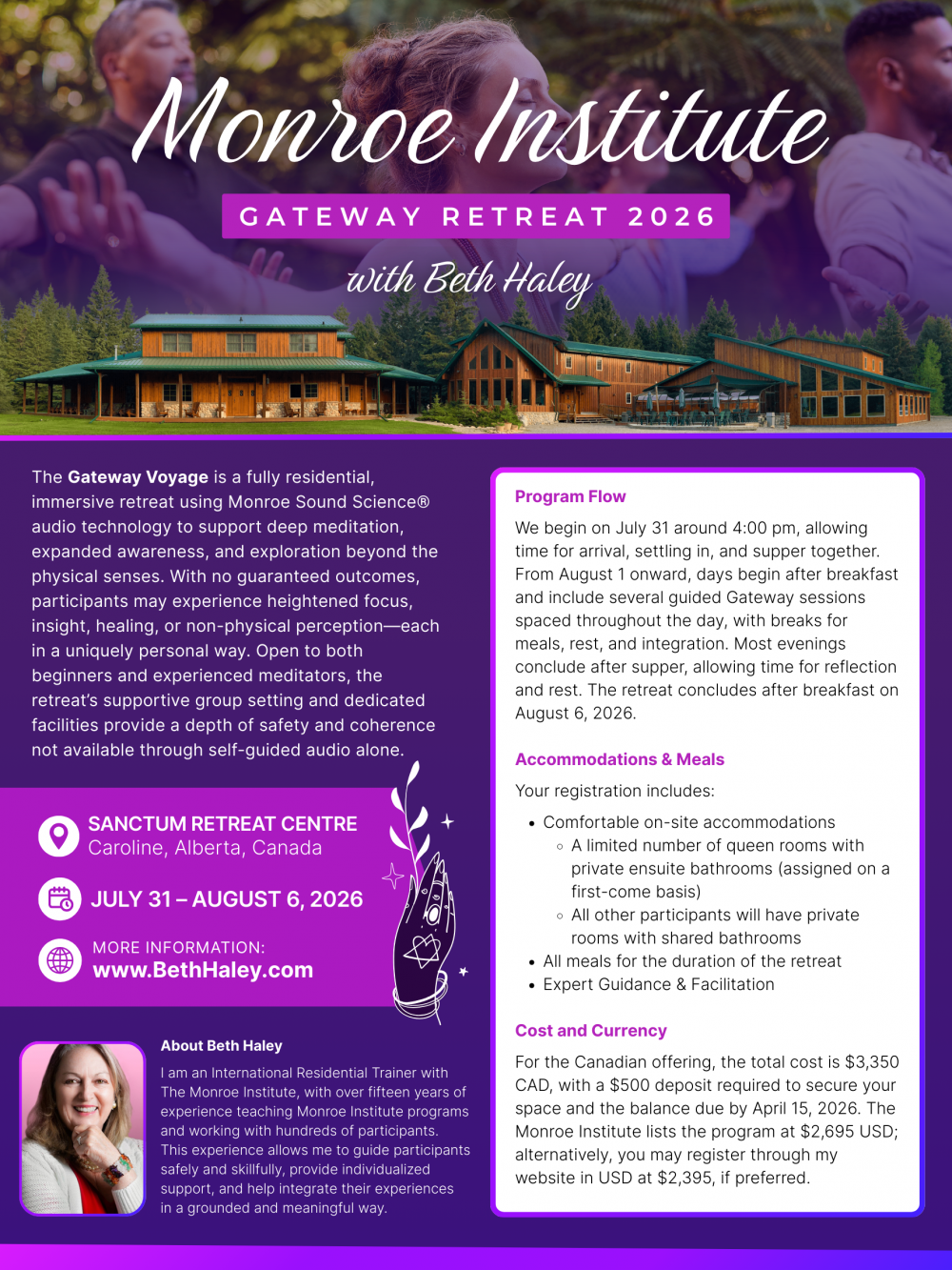 The Gateway Voyage will take place July 31 - August 6, 2026, at the Sanctum Retreat Centre in Caroline, Alberta, Canada.