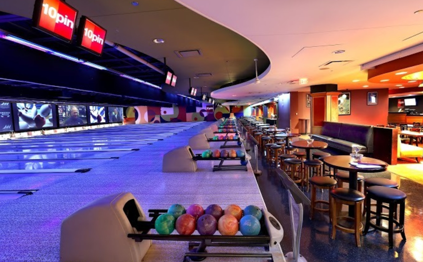 10pin Bowling Lounge in Chicago is an upscale bowling venue located in Marina City, offering a stylish and social experience right in the heart of downtown. It features 24 luxury bowling lanes, including two semi-private lounges, and boasts the largest HD video wall in Chicago, providing an exciting backdrop to your game. Beyond bowling, the lounge offers additional games like ping pong, pool, and shuffleboard, catering to all types of group gatherings—whether it's a casual night out, a corporate event, or a special celebration. The venue also serves a gastropub-inspired menu with lane-side service, featuring popular items like house-made chips, burgers, and handcrafted cocktails, making it perfect for enjoying food and drinks while you play.