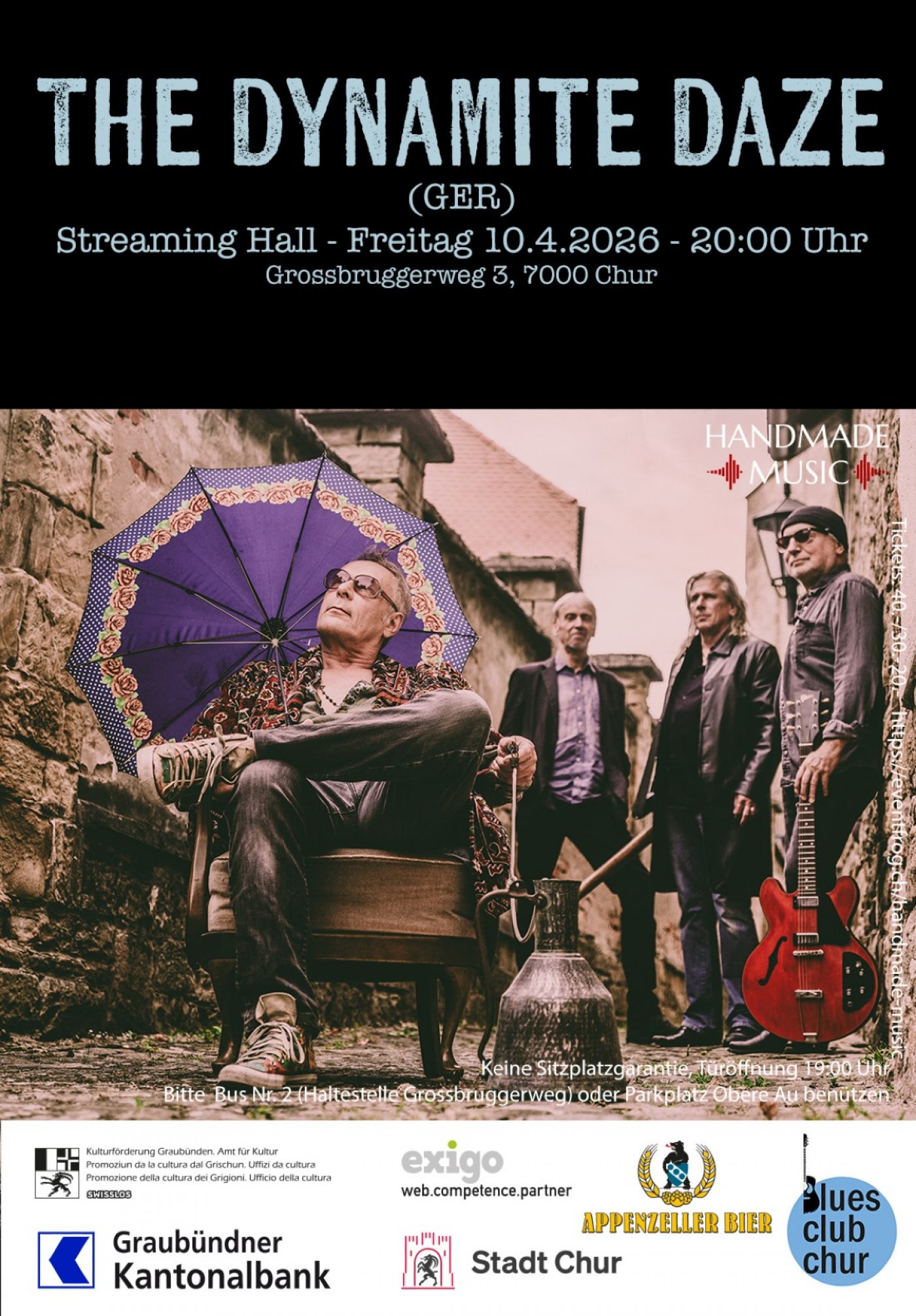 The Dynamite Daze stehen für explosiven Garage- und Kraut-Blues mit eigenwilliger Vision. Frontmann Dirty Didi begeistert mit markanter Harp, unkonventionellem Gesang und schrägen Stories. Eigenständig, energiegeladen und live ein elektrisierendes Erlebnis.