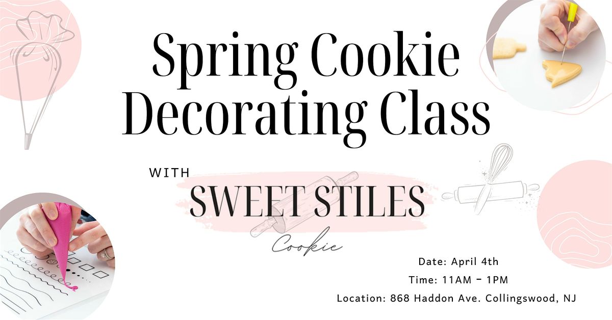 - **Event Description**: Sugar Cookie Decorating Class with Sweet Stiles CookieAbout this EventInterested in learning more about decorated sugar cookies?! Sweet Stiles Cookie is here to help! We’ll be decorating a Spring themed set of cookies this time. Grab your milk and cookies (well, I’ll bring the cookies) for this 2 hour cookie decorating class! Don’t miss out on this fun 6-cookie, 4-icing class.You'll leave class with a great understanding of the basics of sugar cookies plus a few cool techniques we'll cover in class! More details on refunds, things to bring, cancellations, and FAQs are below.ABOUT THIS CLASSThis class is on April 4th and starts at 11:00AM sharp so we can have enough time to decorate and answer questions along the way. Come by yourself, bring your best friend, or bring the family! It's a blast whether you're coming with a friend, family member, or solo!All are welcome to join this class, however this class is recommended for ages 8 and up. If you have some kiddos staying at home, purchase an add-on kit (more on that below)! The kits are great for kids at home, plus - I'll send you the class steps so you can teach them yourself! Attendees under 18 must be accompanied by an adult with a ticket. Anyone attending the class must have a ticket, even if you are there to just observe or help a child.The class will be held at the HUB 868 in Collingswood, NJ located at 868 Haddon Ave. Make sure you select the Collingswood address if using a GPS. This address is located in another town as well.Nervous about the parking situation? Don’t be! Parking is pretty easy - Street parking is available on Haddon Ave and there are several public parking lots within walking distance. Please note that many spots are metered or use ParkMobile. https://www.collingswood.com/things_to_do/getting_here_parking/index.phpTHINGS TO BRINGWondering what you need to bring to have a successful time decorating? Well – nothing’s required – but here’s the things I recommend if you’d like to elevate your experience!Bring an apron! Things can get messy when you’re workin’ with royal icing – so grab an apron (bonus points if it’s cute – I’ll definitely be asking where you got it).Bring your glasses! There’s a reference slide deck to help you decorate, but if things get blurry far away, seeing glasses may be a great bet.Bring your phone! I love it when students take pictures throughout class – so bring a phone!Bring a good attitude! Cookies are fun, but they're also challenging! A good attitude makes all the difference.CANCELLATION / REFUND / SICK POLICYShowing Symptoms Before 7 Days Out:If you’re sick or can't make it prior to the 7-day refund cutoff, you can cancel for a full refund!Showing Symptoms After 7-Days Out:For any sickness symptoms prior to your class’s start time but after the 7-day refund policy, please email hello@SweetStilesCookie.com before your class’s start time. I can provide you with a take home version of the class and a 50% refund.You Don't Show Up or Email Prior To Class:If I do not hear from you before your class’s start time, and you do not show up for class, I won’t be able to offer you a refund. So please reach out before class!DIY / ADD-ON KITSOrder your sugar cookie class kit and take the class home with you to teach a child or friend! These class kits come with everything you'll use in class! Cookie Class DIY Kits are created before your class, and you'll pick them up and take them with you after class.How long can a kit last? Depending on how you store your icing, your kits can last for a week or longer. Freezing cookies keep them fresh for a long time, but I recommend using your kit as soon as possible - ideally in the first week after you've taken it home. Cookies are heat sealed for freshness – but again, use it in under a week to make sure it tastes the best.Allergen Disclaimer / Class Cancellation Policy / Weather Policy / Fees DisclaimerAllergens: Heads up – these cookies include the following ingredients: WHEAT, MILK, EGGPlease note – these cookies are prepared in a kitchen that also bakes with common, known allergens.Please consider your allergies before registering.Class Cancellation Policy: Classes may be cancelled at the discretion of me, the event host. This rarely happens – but in that extremely rare event that it does, you’ll receive a 100% refund.Weather Policy: Sometimes Jack Frost doesn’t play well with cookie class schedules, and Mother Nature seems to be takin’ notes. In the event of inclement weather, I’ll contact you with options – these may differ depending on the weather event but rest assured – we’ll figure something out!CONTACT ME!Questions? I have answers! Reach out to me or check out some of my work on the following social media profiles (and hey – give me a like or follow – I’d love your support!). If you need to reach out directly, below is my email as well.Instagram: @SweetStilesCookieFacebook: Facebook.com/sweetstilescookieEmail: hello@sweetstilescookie.com