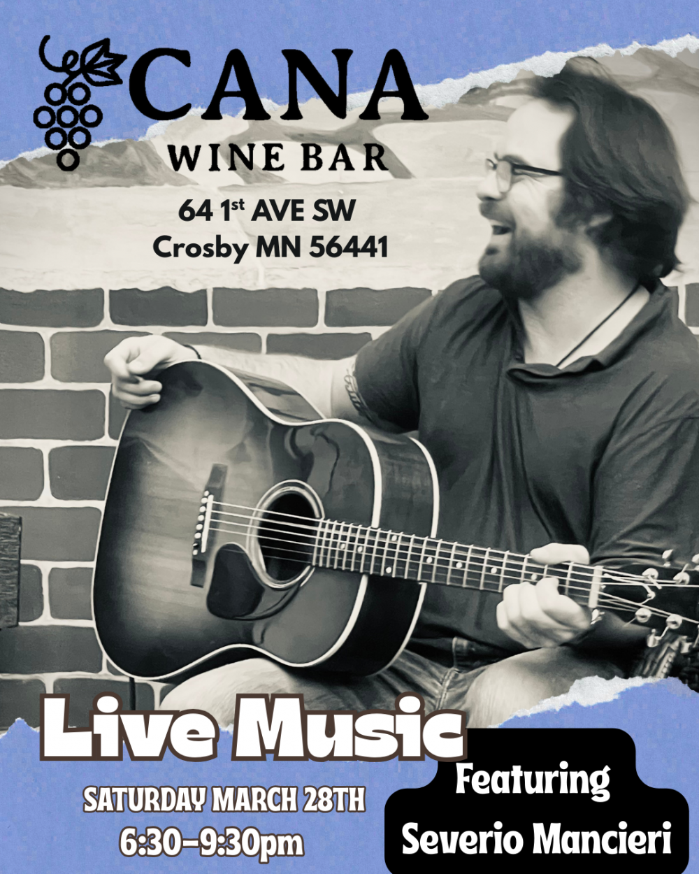 Severio Mancieri is a traveling troubadour from Duluth, Minnesota. Currently traveling the country in a minivan. Born 3 months early and only two pounds at birth, he's been playing piano since 6 and guitar since 10. 175 shows a year, he's released an EP "Can I", a music video to accompany it, and a full length album "A Thousand Feet From The Sun". Hailed as a guitar virtuoso with a resonant voice, this is an artist you won't want to miss.