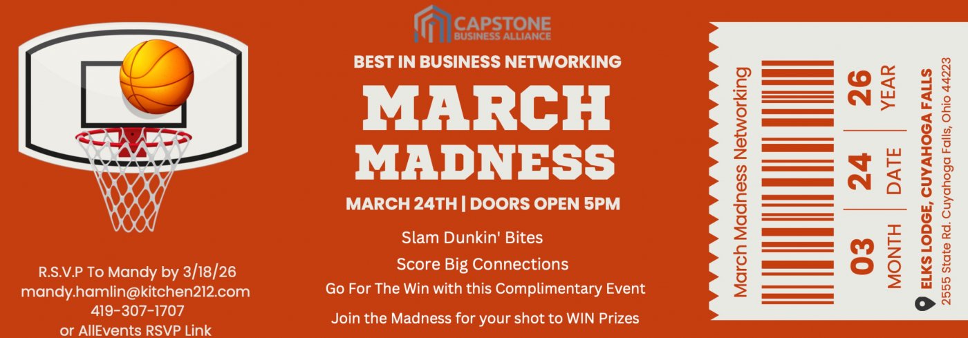Tickets for Capstone Business Alliance, The Best in Business - March Madness Networking Event can be booked here.