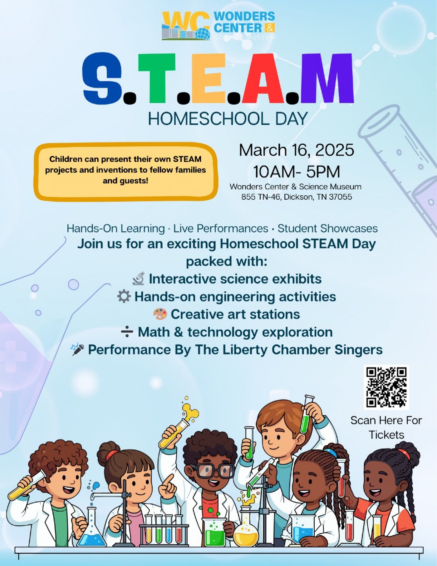 You can get your tickets at: https://tickets.wonderscenter.org/event/stem-homeschool-day-ft-liberty-chamber-singers-1tssfk