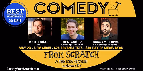 Every 2nd/4th Saturday comedian Ben Asher presents a taste of what the NYC-area's best stand-up comics are cooking up at Comedy From ScratchAbout this EventComedy From Scratch is where yo... Read More