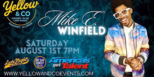 We welcome Comedian Mike W. Winfield to Yellow & Co.!About this EventMike E. Winfield was on America’s Got Talent where he wow’d the judges to a standing ovation and 4 yes’s. After making his debut on The Late Show wi... Read More