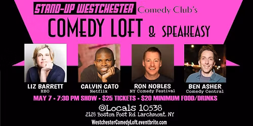 Stand-Up Westchester Comedy Club's Comedy Loft & Speakeasy at Locals 10538 presents top comics from NYC's clubs with the finest food & drinkAbout this EventThe Stand-Up Westchester Comedy Club's 'C... Read More