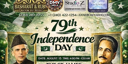 🇵🇰 Jashn-e-Azadi Mega Celebration 2026 🇵🇰 Hosted by Decor by Ruby (240)210.1955 📍 Venue: The St. James 6805 Industrial Road Springfield, VA 22151 📅 Date: August 15, 2026 ⏰ Time: 4:00 PM – 12:00 Midnight 🎉 Family Event | Bring Your Family & Friends... Read More