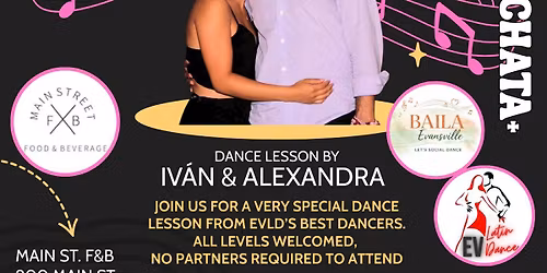Evansville Latin Dance is thrilled to host Ritmo Latinos: Learn to Social Dance class at Main Street Food and Beverage — taught by the incredible Iván Rodríguez and Alexandra Ramirez! We will be located at the new Main Street Dance studio which is connect... Read More
