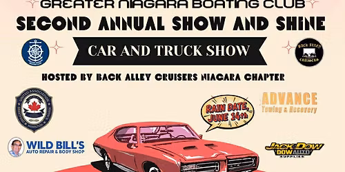 The back alley cruisers Niagara chapter is bringing to you the 2nd annual show and shine greater Niagara Boating Club car show... Read More