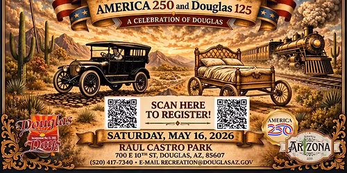 Join us as we celebrate 125 YEARS of Douglas + America 250 🇺🇸 with a weekend full of energy, tradition, and unforgettable fun! ❤️🥳🤩🥳 May 15 & 16, 2026 📍 Raul Castro Park ✨ Get ready for / Prepárate para: 🎶 Live Music / Música en vivo: 🎸 🤘 Spandex Na... Read More