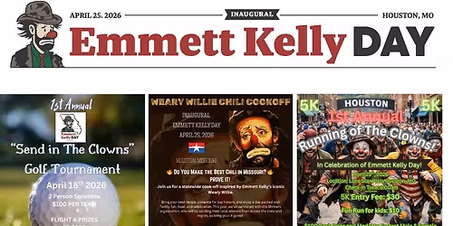 Come celebrate the life and legacy of Emmett Kelly at the Inaugural Emmett Kelly Day on April 25th, 2026! Start the celebration on April 18th with a Scramble Golf Tournament. On Friday the 24th following the Kindergarten Circus there will be a Movie... Read More