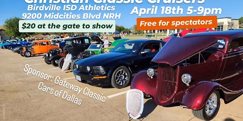 Christian Classic Cruisers CAR SHOW MARCH 25th 5-9 pm Birdville ISD Athletics 9200 Midcities Blvd North Richland Hills Christmas gifts for underprivileged kids is our primary goal, while honoring God with his blessings and with our service. Spectators are... Read More