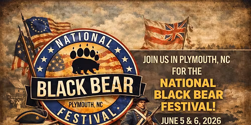 Join us for the 2026 National Black Bear Festival in downtown Plymouth, North Carolina on Friday afternoon, June 5 and Saturday, June 6, 2026! This free, family-friendly festival celebrates the black bears of eastern North Carolina with over 40 activities... Read More