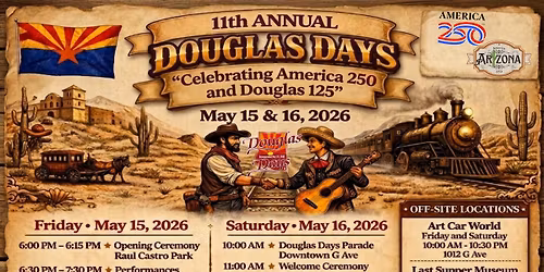 DOUGLAS DAYS 2026 IS BACK! 🎉🚨Join us as we celebrate 125 YEARS of Douglas + America 250 🇺🇸 with a weekend full of energy, tradition, and unforgettable fun! ❤️🥳🤩🥳📅 May 15 & 16, 2026 📍 Raul Castro Park ✨ Get ready for / Prepárate para: 🎶 Live Music / Mú... Read More