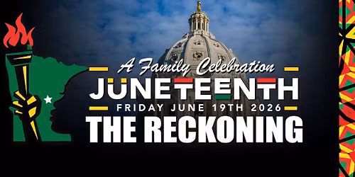 The 5th Annual Juneteenth Celebration - The Reckoning Friday June 19th - on Juneteenth Day - 2026 at Minnesota's State Capitol grounds. Join us for great entertainment, resources including legal, civil rights, food, health & wellness resources and mo... Read More