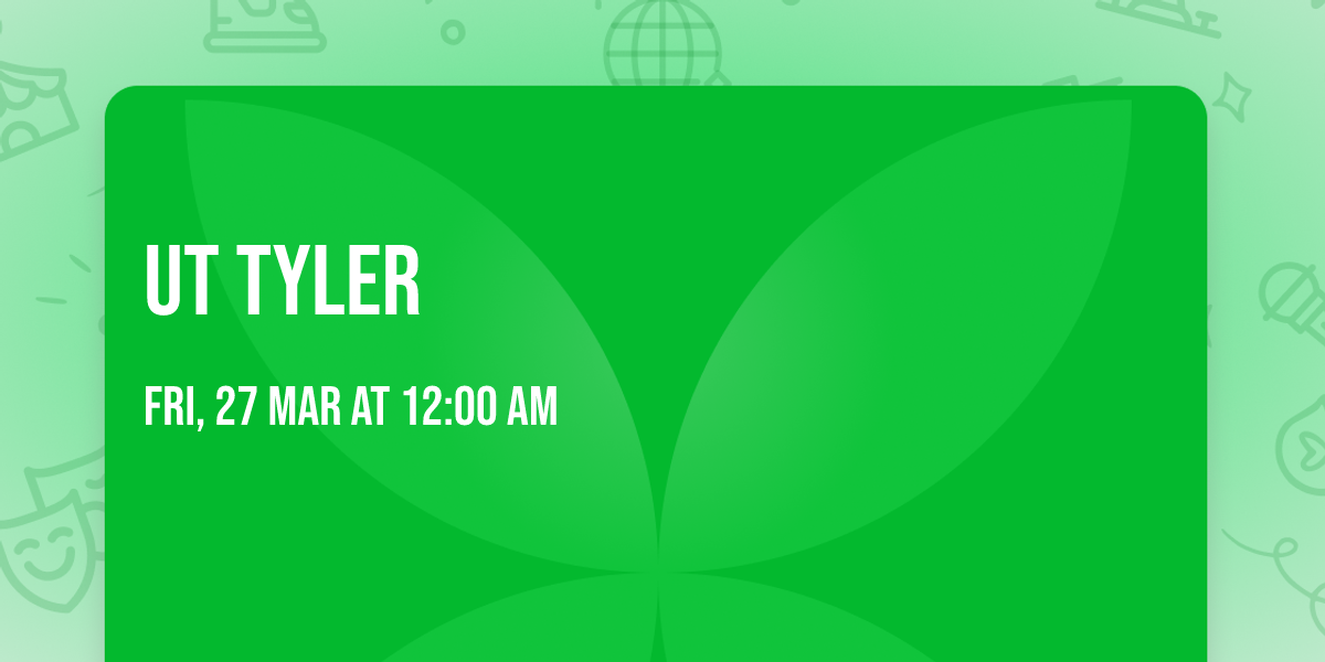 Friday, March 27 at Patriot Plaza | UT Tyler – Tyler, Texas 7 PM live concert, fireworks and drone show following the concert. Enjoy a night of Red Dirt country music as part of UT Tyler Homecoming Week. All are welcome. For the complete schedule of Hom... Read More