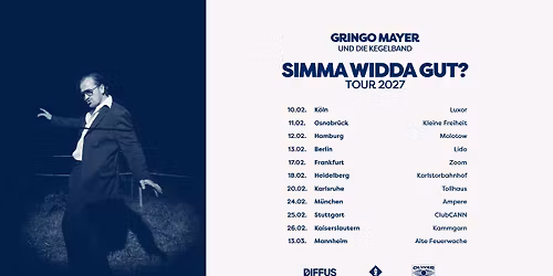 SIMMA WIDDA GUT? TOUR 27 Simma widda gut? Ne? Aber spätestens Anfang 2027, oder? Weil da heißt’s endlich wieder: Laav is everywhere – Gringo Mayer und die Kegelband gehen auf große Tour! Aus der hässlichsten Stadt Deutschlands – ja, Ludwigshafen – und mi... Read More