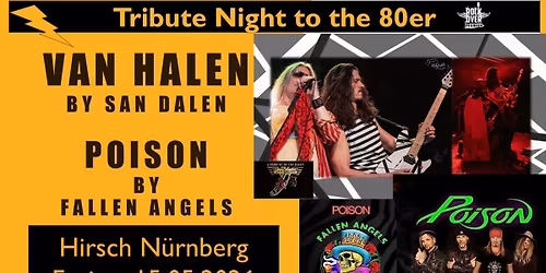 San Dalen Tributeshow to Van Halen meets Falling Angels Tribute to Poison Fallen Angel ist eine authentische Poison-Tribute-Band, die Songs von ihrem ersten Erfolgsalbum bis hin zu ihren neuesten Werken covert. Eine Fallen-Angel-Show bietet eine origin... Read More