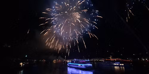 Feuerzauber über dem Main: Auf den Brücken und an den Ufern drängen sich die Menschen um den besten Platz fürs Feuerwerk - Sie hingegen haben einen Logenplatz: Die Schiffe der Primus-Linie ankern auf dem Main. Von hier aus genießen Sie ungestört die prac... Read More