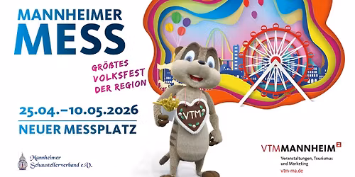 Vom 25.04. bis 10.05.2026 findet wieder die Mannheimer Maimess statt. Freut euch auf jede Menge Fahrgeschäfte, das spektakuläre Feuerwerk und vieles mehr! Weitere Details folgen. Wir freuen uns auf euren Besuch! ⏰ Öffnungszeiten: Sonntag bis Donnerstag... Read More