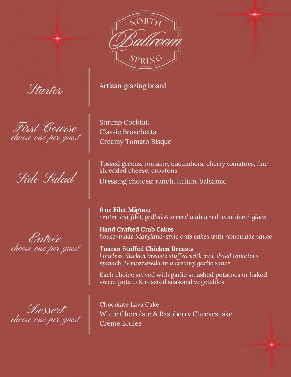 A carefully crafted, customizable four-course dinner