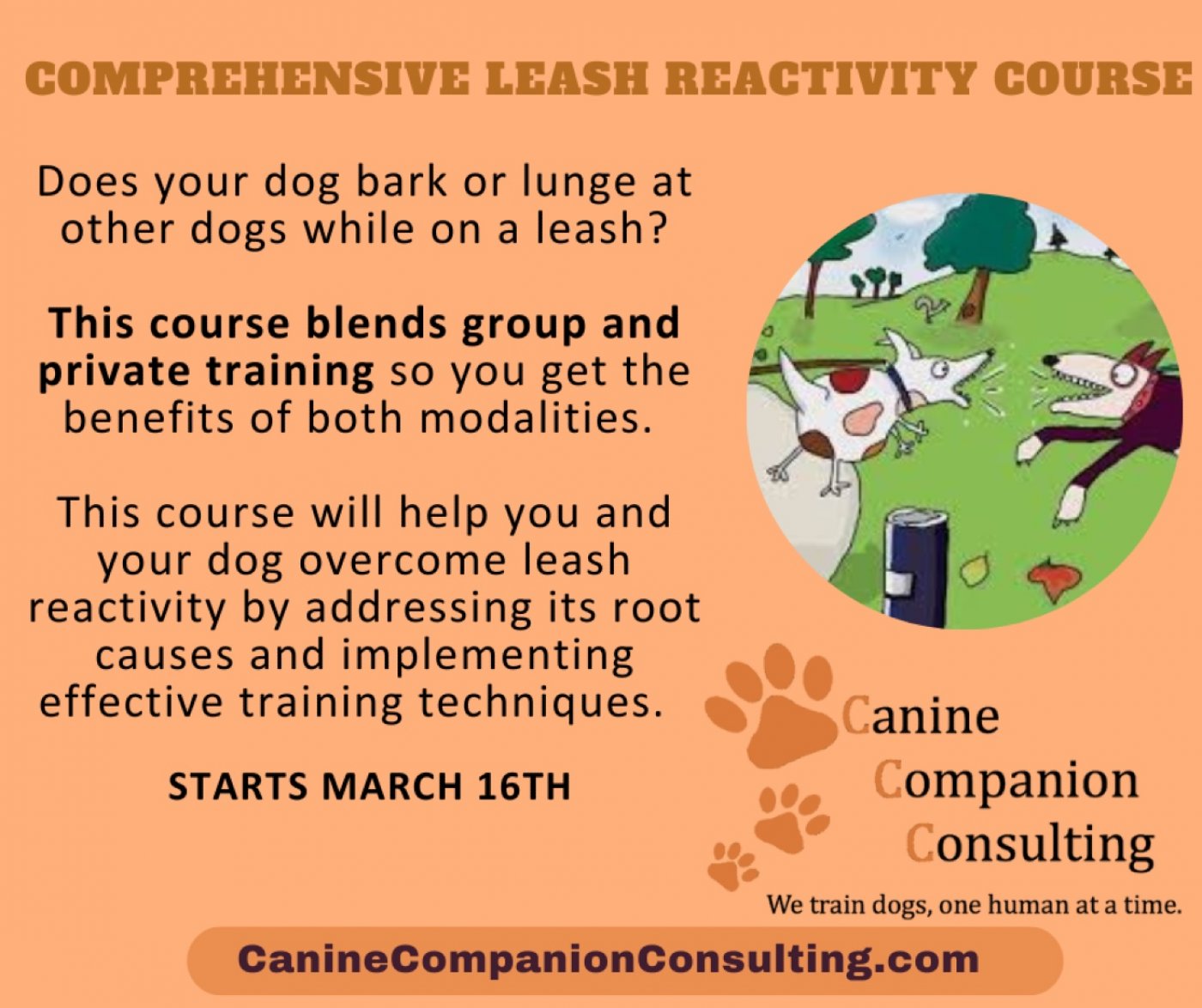 Tickets for Comprehensive Leash Reactivity Course can be booked here.
