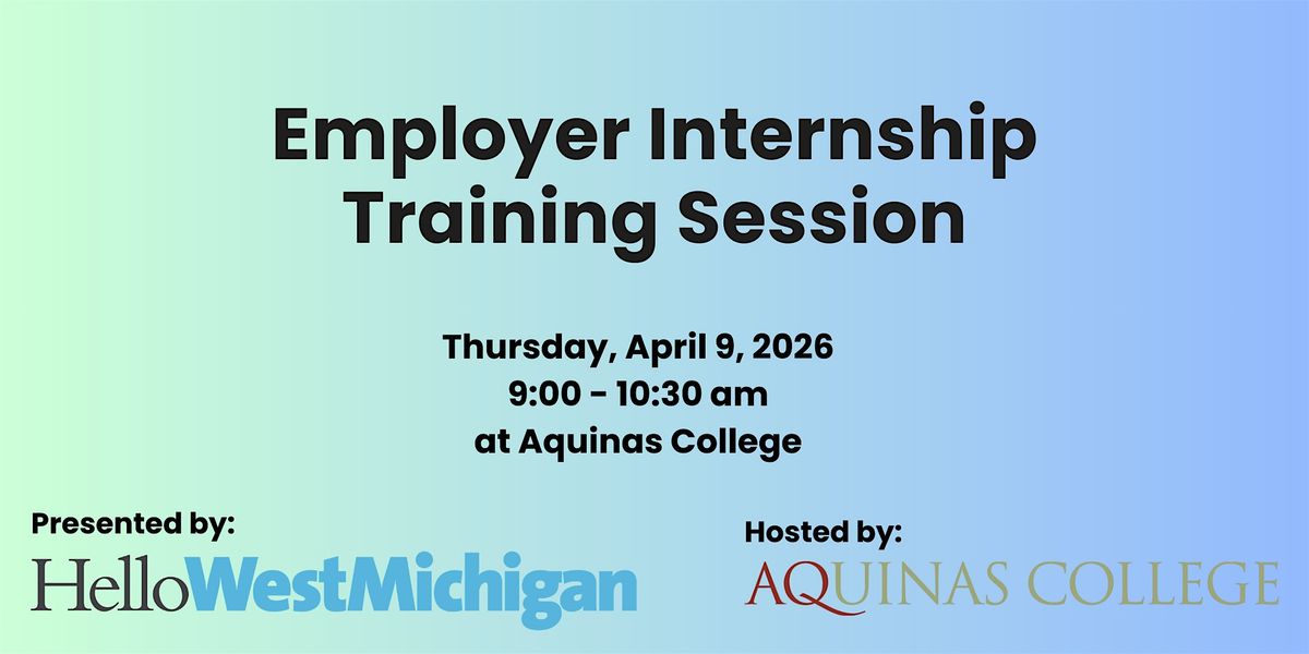 - **Event Description**: Are you an employer looking to improve or create an internship program for your company? This session is for you!About this EventWhether you’re starting from scratch or looking to bolster your current program, our hands-on workshop is designed to leave participants feeling confident in what it takes to start or enhance an internship program.Throughout this workshop, you'll hear both the employer and university perspective on:The key components that make an internship program successful, from recruitment to evaluation.Five steps to developing a quality internship programThe importance of mentorship and supervisionHiring international studentsAnd more!We will dive deep into your questions about the recruiting process, gaining support from leadership, and any other elements of interest.This session is ideal for employers who are looking to create, enhance, or revamp their internship programs to attract top talent, foster a productive and engaging learning environment, and grow your talent pipeline. The ideal time to attend a training is three months prior to bringing an intern on board. Join us and Aquinas College for an insightful and interactive training designed to help businesses maximize the potential of their internship programs.*This session is one of several taking place throughout the 2025-2026 school year. If you can't make this one, be sure to check out the other dates this is being offered!