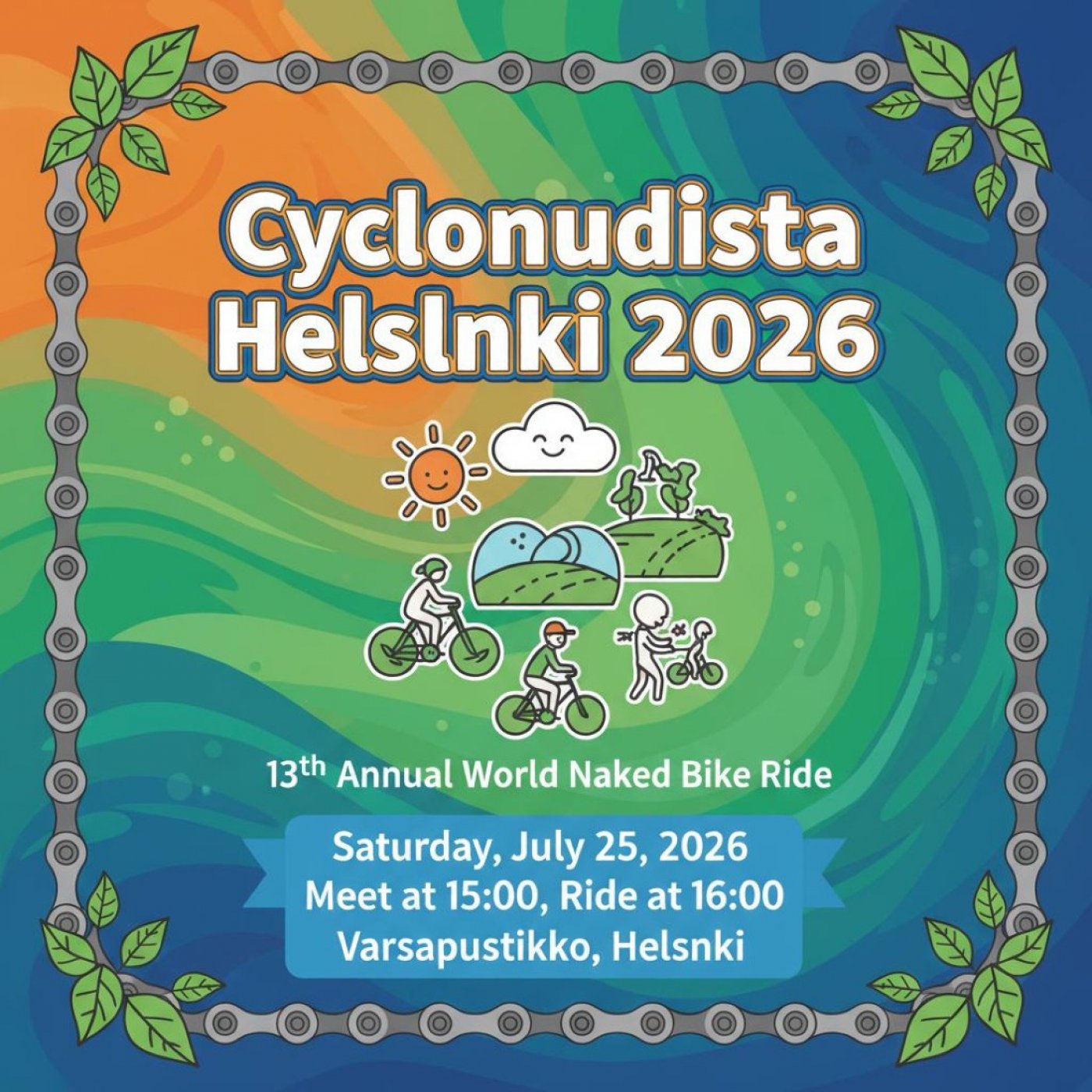 Join us on Saturday July 25 2026 for the 13th annual Cyclonudista Helsinki an exciting and colorful cycling event promoting environmental awareness body freedom and sustainable urban transport.