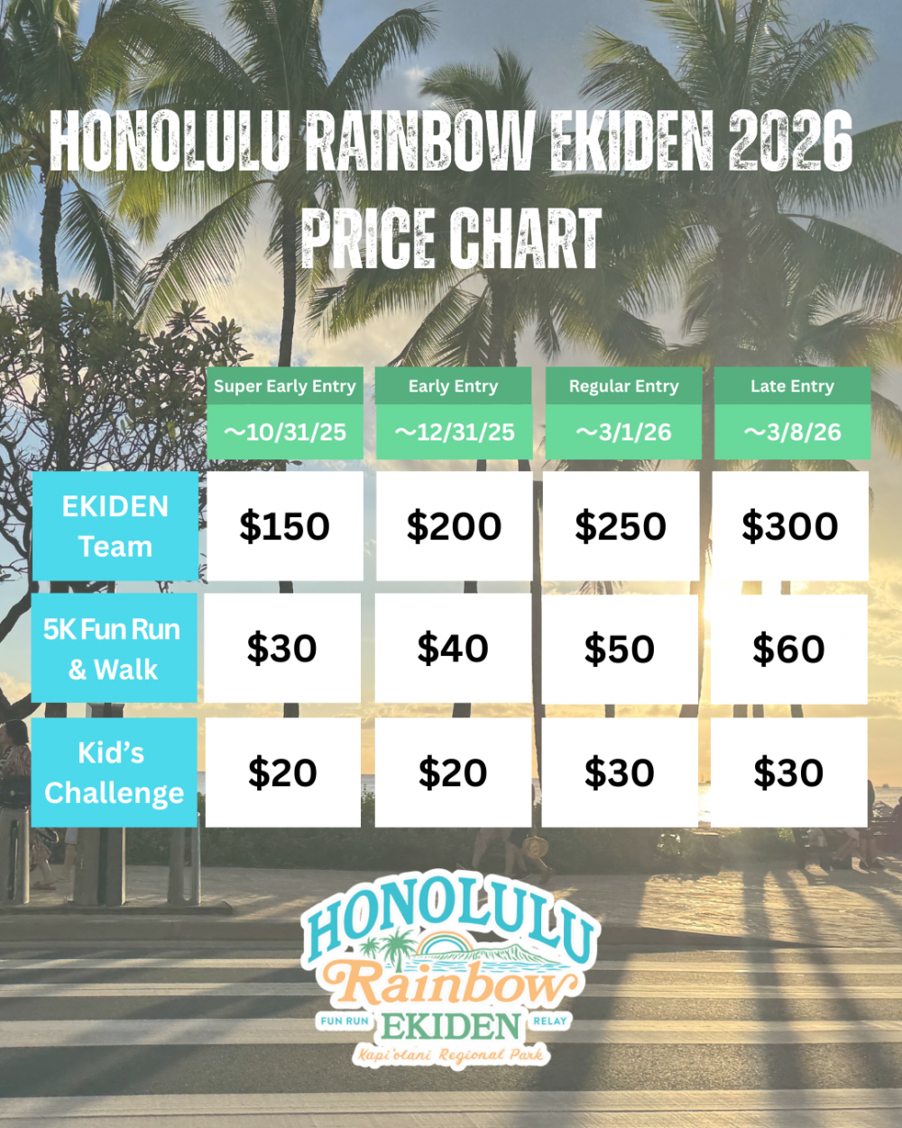 Tickets for Honolulu Rainbow EKIDEN can be booked here.