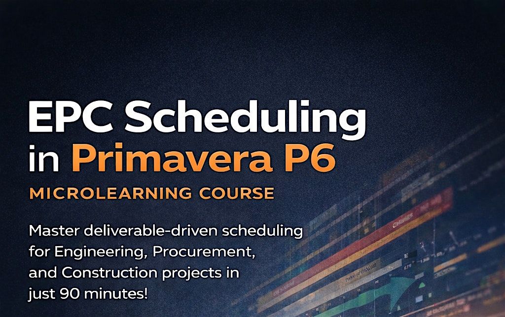- **Event Description**: Join our Micro Session EPC in P6 Training Class [90 Minute].  Select your date &amp; TimeAbout this EventCOURSE OVERVIEWThis immersive program takes you inside a real EPC lifecycle and walks you step-by-step through how schedules should be built as projects pass through each stage-gate (FEL → 30% → 60% → 90% → IFC).You will learn how engineering output drives procurement and how procurement drives construction — including long-lead items, deliverable chains, fabrication requirements, and logic ties.You’ll also get guided P6 exercises (engineering, procurement, and construction examples), Excel deliverable tracking, rolling wave planning, and schedule optimization techniques used in real projects.By the end of this course, you’ll not only understand how EPC projects flow — you’ll know how to build, update, and defend a fully integrated schedule.Classes are taught by Primavera instructors who are experienced in providing both Primavera P6 training classes and P6 scheduling consulting services.COURSE DETAILSEPC Fundamentals &amp; Stage-Gate FlowHow EPC projects are structured (Engineering → Procurement → Construction)The role of deliverables, MTOs, RFQs, POs, fabrication, and installationHow phase gates (FEL2, FEL3, 30/60/90/IFC) impact schedule maturityRolling Wave PlanningHow to detail near-term work and summarize future phasesExpansion of engineering packages into procurement and construction chainsHow to prepare for weekly or bi-weekly schedule cyclesEngineering Scheduling TechniquesDeliverable tracking in ExcelRules of credit for engineering progressCreating engineering-driven logic in P6Procurement &amp; Long-Lead Item SchedulingMTO → RFQ → PO → fabrication → delivery sequencingBuilding long-lead milestonesModeling vendor cycles and risks in P6Construction Sequencing &amp; Workface IntegrationTurning IFC packages into construction activitiesSequencing by system, area, or disciplineIntegrating fabrication and field schedulesHands-On Primavera P6 ExercisesCreating WBS structures for EPCAssigning logic and resourcesRunning the scheduleReviewing critical path and key driversPerforming updates and analyzing changesWho Should AttendThis course is ideal for:Schedulers &amp; Planners (Beginner to Advanced)Project Controls ProfessionalsCost Controllers &amp; Earned Value AnalystsProject Engineers &amp; Construction EngineersTurnaround Planners transitioning to EPCManagers seeking better schedule oversightIf you work on capital projects, industrial facilities, fabrication, or major EPC work — this course gives you the real-world skills you need.What You Receive90 Minute instructor-led trainingEngineering, Procurement, and Construction practice XER filesExcel deliverables workbookPrimavera P6 hand exercises (engineering &amp; procurement chains)Certificate of CompletionBONUS - my latest book EPC Scheduling Simplified [a $48.95 value FREE]Why This Course Stands OutUnlike academic or theory-based scheduling classes, this course is built from real project experience — taught across the Gulf Coast at conferences and companies who rely on deliverable-driven planning.You’ll learn exactly how EPC schedules are built in the real world, not just how P6 buttons work.