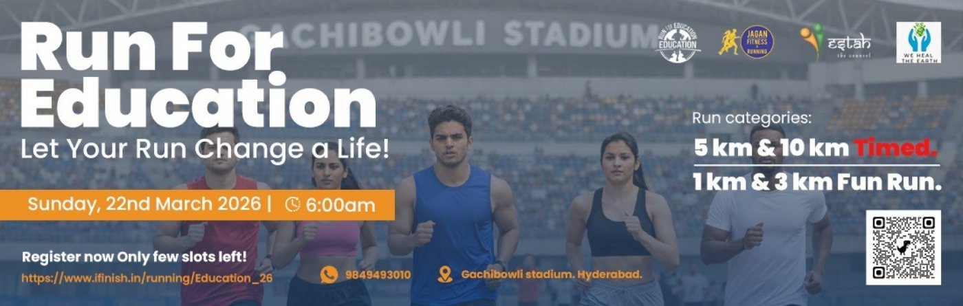 Run for Education, an initiative by WE HEAL THE EARTH, is a purpose-driven movement uniting education, sustainability, and community impact. Aligned with Vision 2047, it empowers individuals and institutions through practical learning to train 40,000 students, create 40,000 jobs, and impact 4 million lives. The event takes place on January 24, 2026, at Gachibowli Stadium, Hyderabad, while also recognizing excellence through solution-driven education awards.