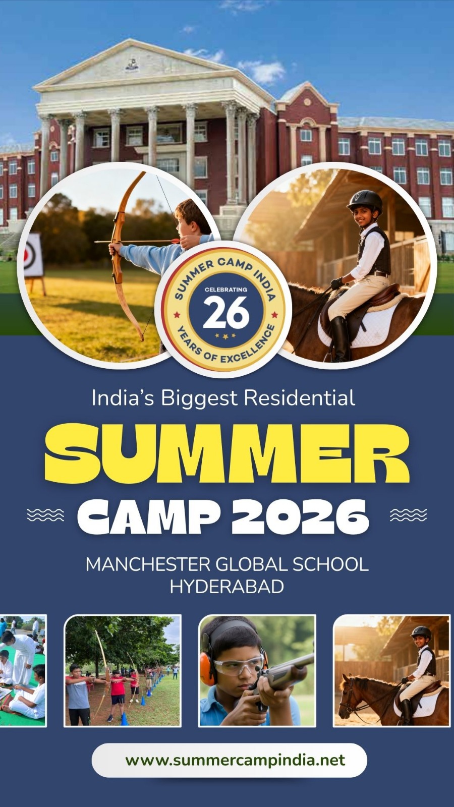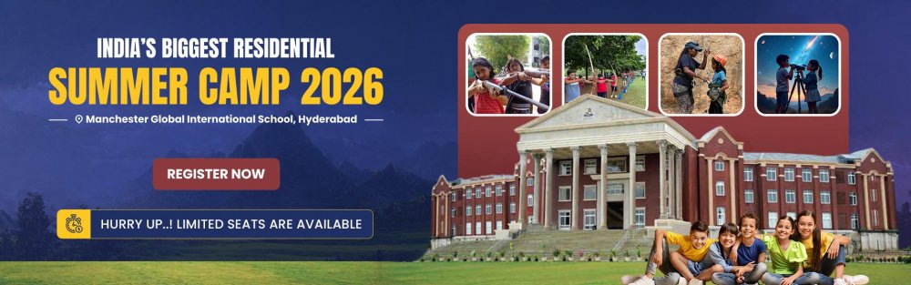Residential Summer Camp India 26th, All India Residential Summer Camp, Age Above 8-18 years Boys and Girls, Camp Starts From 03rd May to 24th May 2026 (22 Days) At Manchester Global School | Best International School Campus 16Km Distance from Airport, The World Famous Jyotirlinga Srisailam Highway Hyderabad.