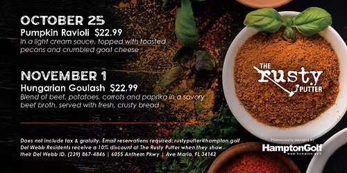 - Saturday Chef's Table is hosted at "6005 Anthem Pkwy, Ave Maria, FL, United States, Florida 34142".