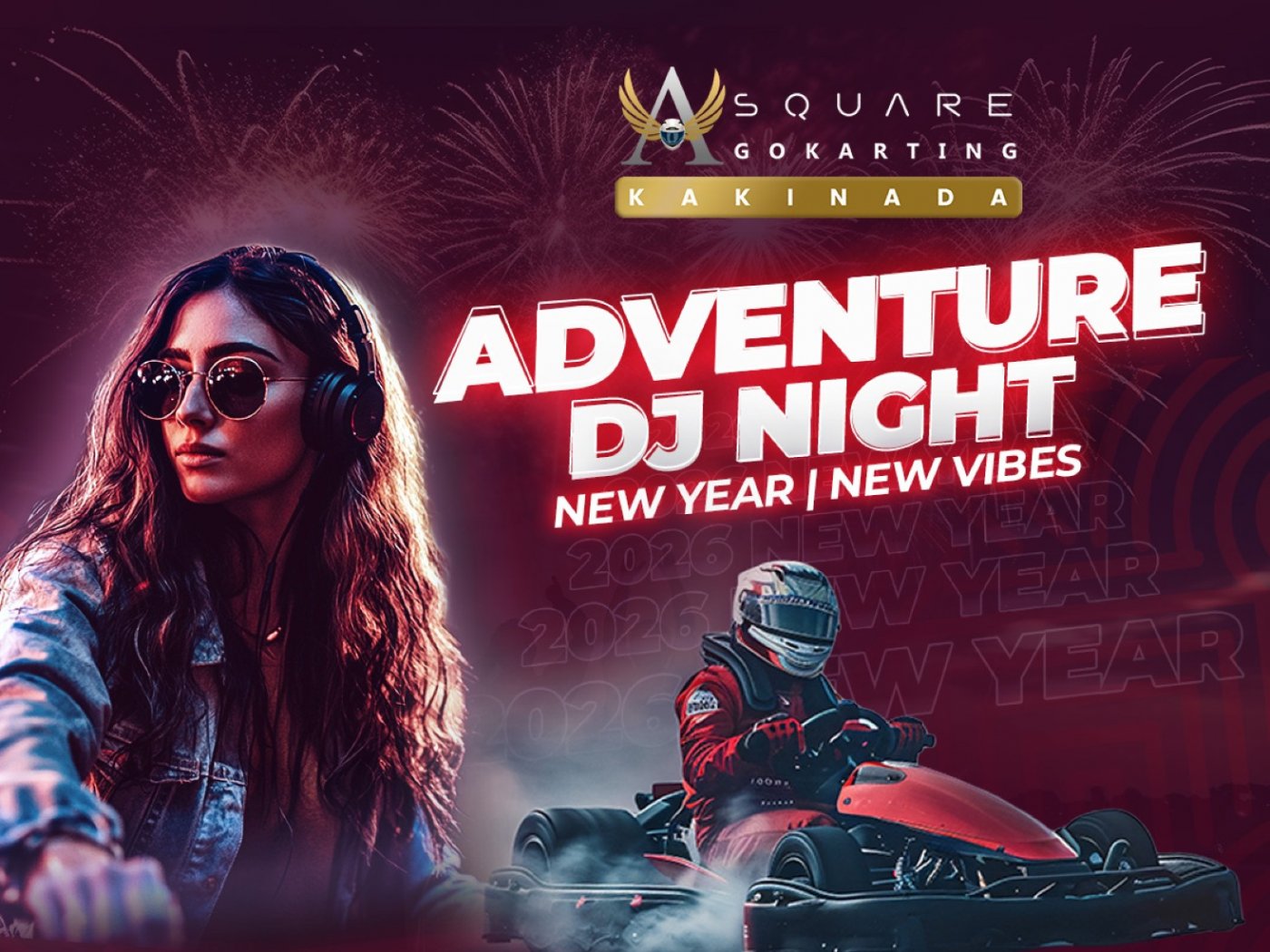 - **A:** ADVENTURE DJ NIGHT 2026, NEW YEAR, NEW VIBES is organized by A Square Gokarting.