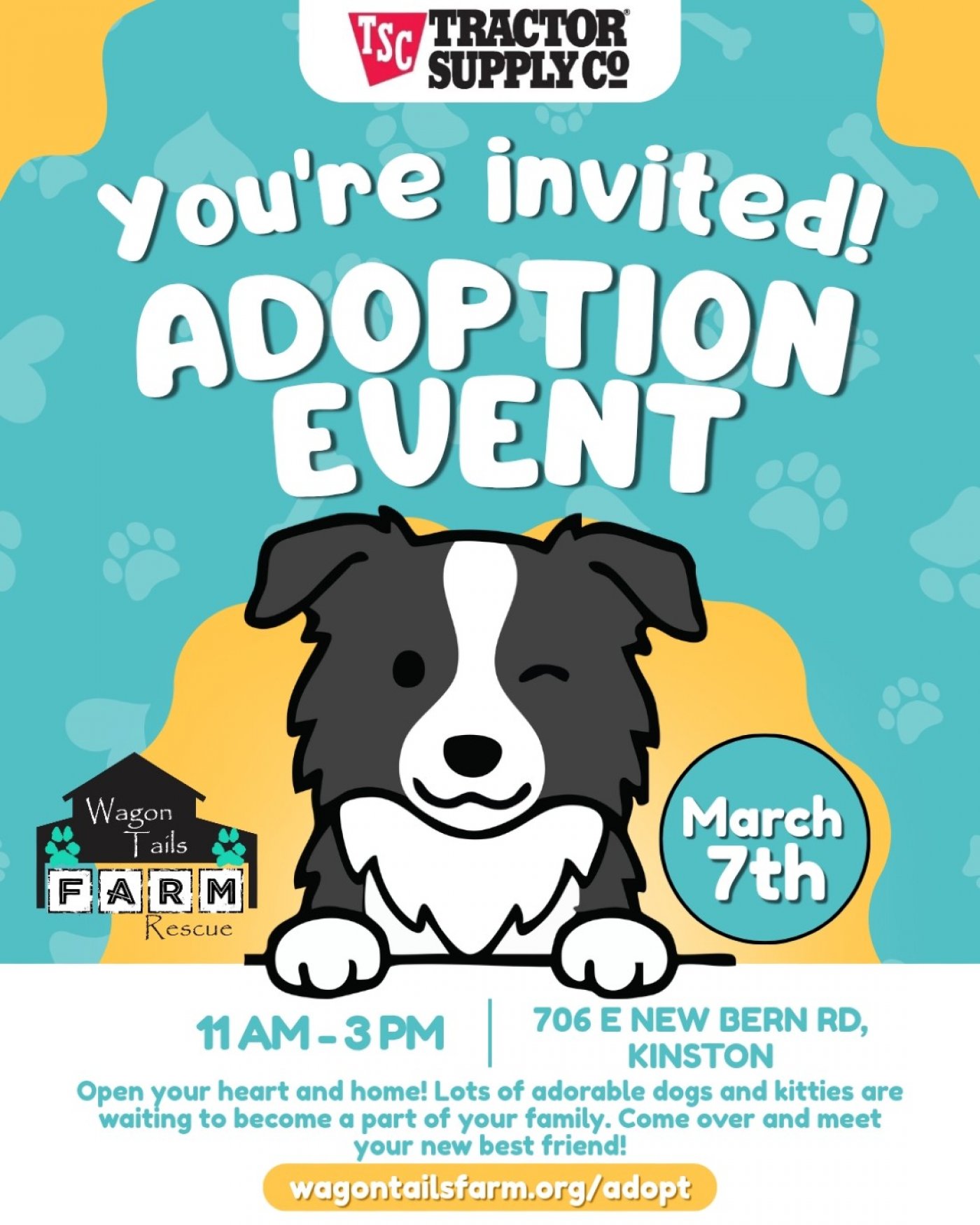 Looking for a new furry family member?? Just wanna get your puppy or kitty fix in?? Stop out to Kinston TSC on Sat the 7th & visit our event team and meet some amazing adoptable fosters! Drop off a donation while you're there or just hang out and have some fun.