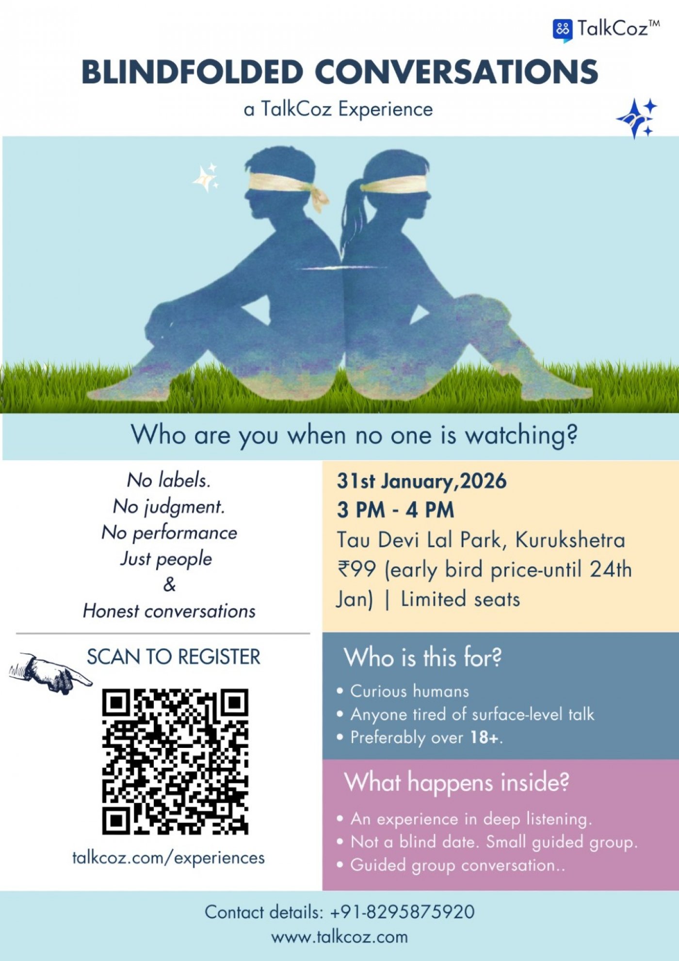 Tickets for Blindfolded Conversations Experience can be booked here.