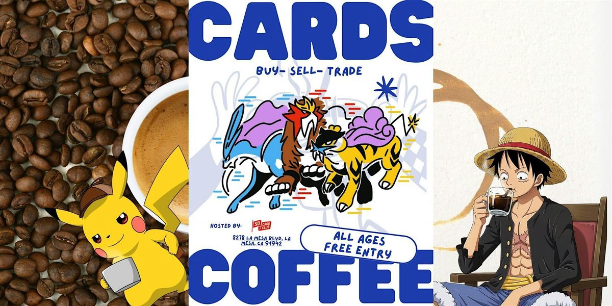 - **Event Description**: Buy • Sell • Trade Trading Cards in San Diego Trade Night Join Us For Cards and CoffeeAbout this Event☕ San Diego Cards &amp; Coffee – Pokémon &amp; TCG Trade Night (La Mesa)Free Entry • Buy • Sell • Trade Trading Cards in East County? Thursday, March 13, 2026⏰ 5:00 PM – 9:00 PM? Public Square Coffee House?️ FREE ENTRY | All Ages WelcomeLooking for a San Diego Pokémon event, TCG trade night, or a fun Friday night card meetup in La Mesa? Join San Diego Cards &amp; Coffee, the ultimate community trading card hangout hosted by  and CardsandCollectors.com in the heart of La Mesa Village.This free-entry event brings together collectors from across San Diego County to buy, sell, and trade Pokémon cards, sports cards, Magic: The Gathering, One Piece, Lorcana, and more — all while enjoying great coffee, themed drinks, music, and the buzz of the La Mesa Village Farmers Market happening nearby.If you’ve been searching for:Pokémon trade night San DiegoSan Diego card showsTCG events near La MesaBuy and sell sports cards San DiegoEast County trading card meetups? This is your spot.? WHAT TO EXPECTBuy • Sell • Trade All Major TCGsExplore and trade across the hobby:Pokémon (vintage, modern, slabs &amp; sealed)Sports cards (NBA, NFL, MLB &amp; more)Magic: The GatheringOne PieceDisney LorcanaRaw singles, graded cards, binders &amp; sealed productBring your binders and trade boxes — this is an open trading environment built for real collectors.? Live DJ &amp; Community EnergyA live DJ keeps the vibe high all night, turning this into more than a card meetup — it’s one of the most social hobby events in East County.☕ Themed Drinks &amp; Specialty MenuEnjoy special themed drinks and menu items while you trade. Grab a custom latte, specialty coffee, or evening beverage and settle in for the night.? Free Giveaways All NightWe’ll be running live giveaways including:Free card packsPokémon productSealed ProductStay until the end — winners are announced throughout the event.? LOCATION – LA MESA VILLAGEPublic Square Coffee House8278 La Mesa Blvd, La Mesa, CA 91942Cards &amp; Coffee runs during and after the La Mesa Village Farmers Market (3 PM – 7 PM), bringing extra foot traffic, local vendors, fresh food, and strong community vibes to the area.?‍?‍?‍? WHO SHOULD ATTENDPerfect for:Pokémon collectorsSports card buyers &amp; sellersTCG players and deck buildersFamilies looking for things to do in La MesaNew collectors entering the hobbyAnyone looking for Thursday night events in San DiegoWhether you’re hunting grails, flipping inventory, completing sets, or just meeting other collectors, this is one of the fastest-growing card meetups in San Diego.? VENDOR &amp; EVENT CONTACTPresented by SD Card Club? Ryan – Cards &amp; CollectorsPhone/Text: (619) 734-6771? ? cardsandcollectors.comFollow for updates: @sdcardclubInterested in vending at future San Diego card events? Space is limited — reach out ASAP.?️ SAVE THE DATEMarch 13, 2026 | 5 PM – 9 PMSan Diego Cards &amp; CoffeeLa Mesa, CaliforniaYour go-to San Diego Pokémon trade night, TCG meetup, and East County card community event.Cards. Coffee. Community. ?☕Agenda?: 03:00 PM - 07:00 PMFarmers MarketInfo: Cards &amp; Coffee runs during and after the La Mesa Village Farmers Market (3 PM – 7 PM) parking can get crazy so come early enjoy the market and then end it with some trading. ?: 05:00 PM - 09:00 PMCards &amp; CoffeeInfo: Buy • Sell • Trade All Major TCGs